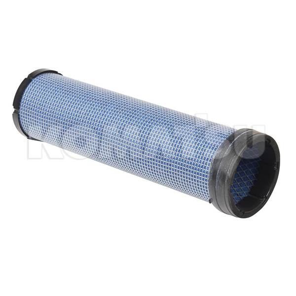 Cylindrical air filter element with dimensions 12.4 x 12.4 x 43.8 cm. Features a blue mesh exterior and black rubber caps. Designed for machinery or automotive applications to remove particles from the air before it enters the engine. Weighs 0.3 kg.