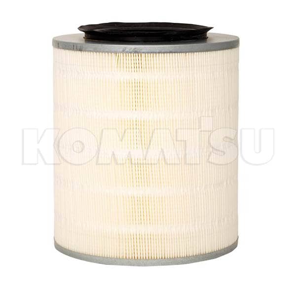 Cylindrical Air Filter with pleated paper material and metal caps. Features a black rubber gasket for sealing. Weighs 1.492 kg. Ensures optimal system protection for various applications.