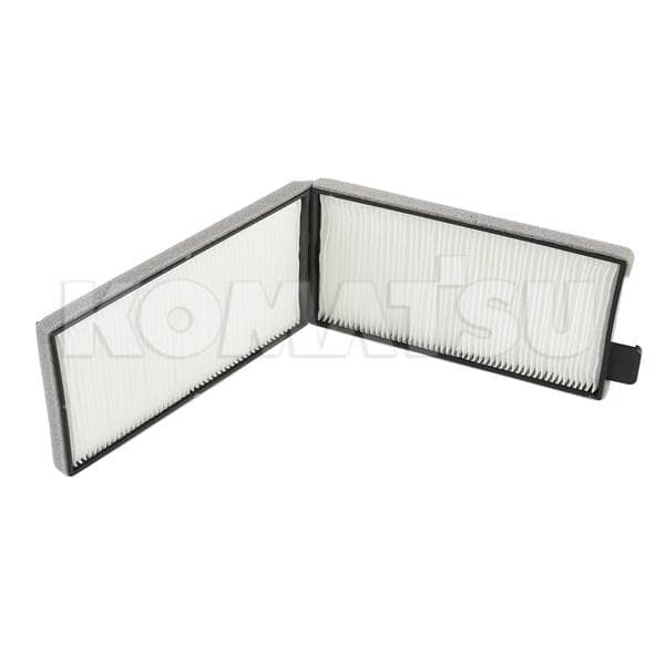 Foldable air conditioner filter with pleated material and dimensions 14.6 x 45.2 x 2.4 cm. Fits Komatsu models GD555-5, GD655-5.