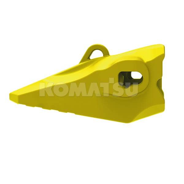 Heavy-duty excavator or loader tooth with a pointed, triangular shape for digging and breaking tough materials. Features a mounting hole and loop for secure attachment. Weighs 13.1088 kg. Suitable for construction and mining applications.