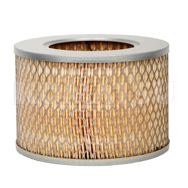 Cylindrical Air Filter with metal mesh exterior and pleated paper element. Designed to trap dust and particles. Weighs 3.72 kg. Suitable for various engine and machine applications.