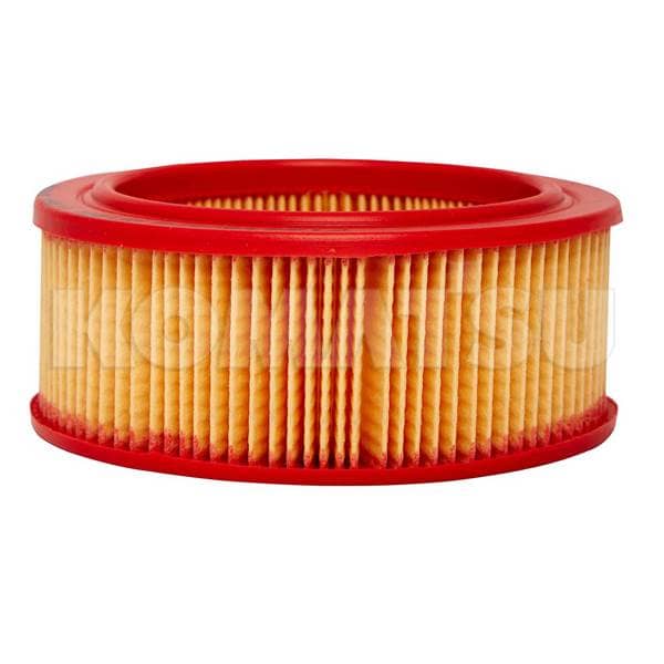 Cylindrical Air Filter with pleated paper material and red rubber frame. Enhances filtration efficiency for automotive and industrial applications. Weighs 0.1 kg.