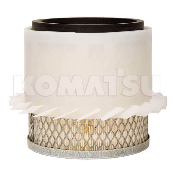 Cylindrical Air Filter with metal mesh and pleated paper element. Features metal rims and a black rubber gasket for sealing. Weighs 0.8696 kg. Designed to remove particulates from the air before it enters the engine or machinery.