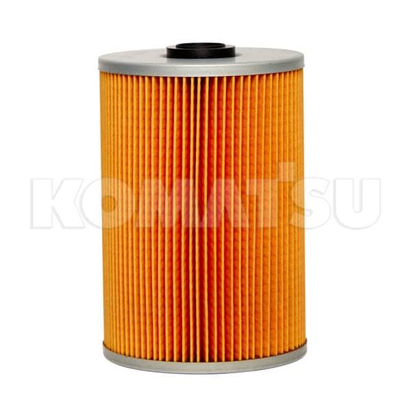 Fuel Filter Element with orange pleated paper element and silver metal end caps. Designed for effective filtration in Komatsu and non-Komatsu equipment. Weighs 0.02 kg.