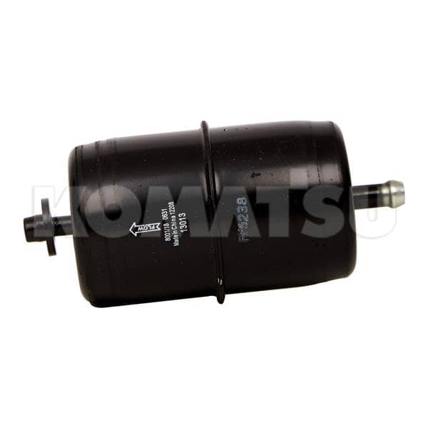 Fuel Filter Element with nozzles on each end. Ensures effective filtering for scheduled maintenance. Suitable for Komatsu and non-Komatsu equipment. Weight: 0.2948 kg.