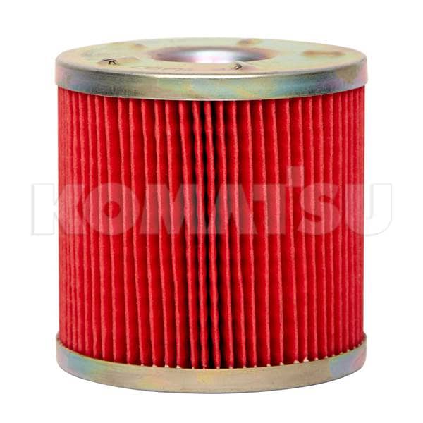 Cylindrical Fuel Filter Element with red pleated material and metallic end caps. Ensures optimal system protection and suits various machinery or automotive applications. Weighs 0.1 kg.