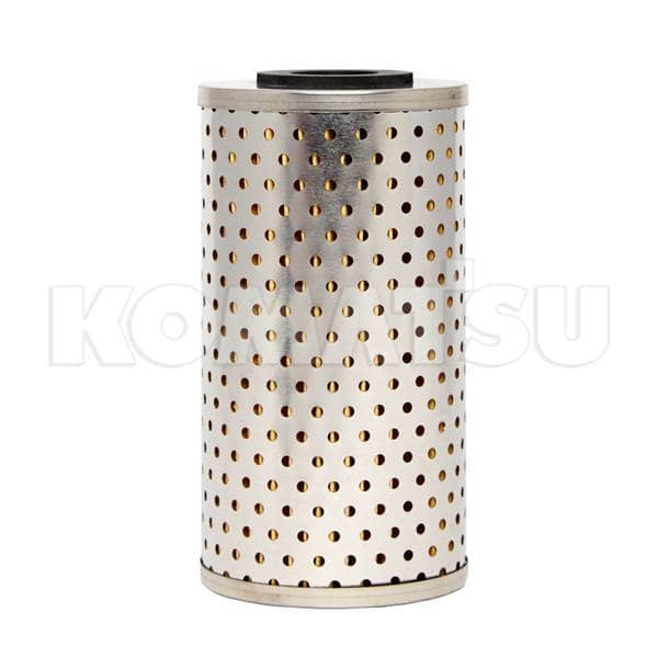 Cylindrical metal fuel filter with perforated holes. Dimensions 8.5 x 16.0 x 8.5 cm. Ensures effective filtering for scheduled maintenance.