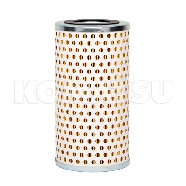 Fuel Filter Element with perforated metal outer shell and reinforced metal rims. Designed for effective filtering during scheduled maintenance. Suitable for Komatsu and non-Komatsu equipment.