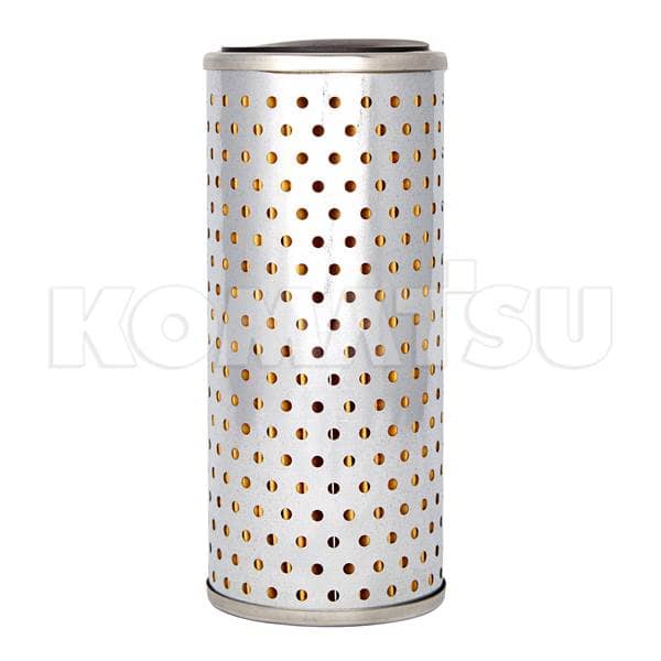Cylindrical metal engine oil filter element with perforated outer shell and reinforced edges. Designed to trap particles and contaminants for optimal performance. Weighs 0.606 kg.