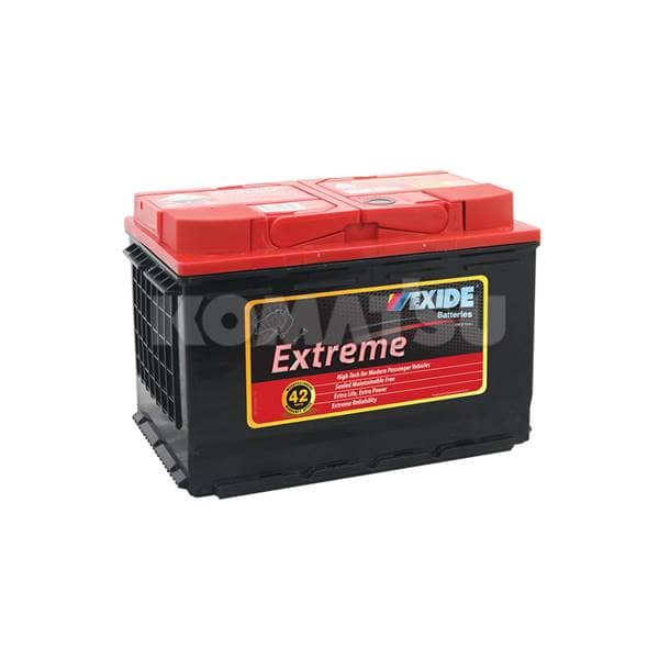 battery with dimensions 27.7 x 17.5 x 19.0 cm and weight 18.73 kg. Features a black body, red top, and handle for easy carrying. Suitable for various Komatsu machines.