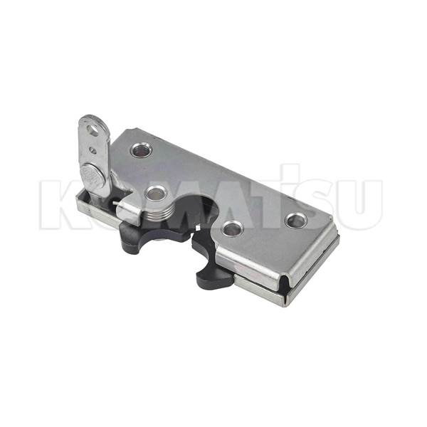 Stainless steel industrial door hinge with dimensions 6.0 x 11.5 x 7.0 cm. Features multiple screw holes and a pivoting mechanism. Suits various Komatsu Wheeled Loaders.