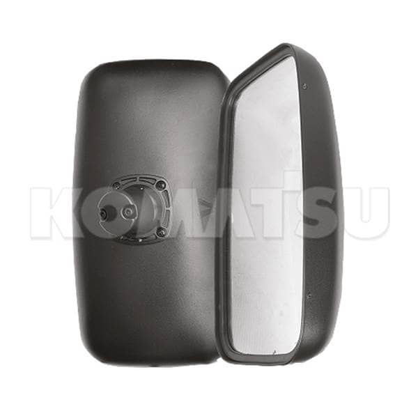 Large flat mirror assembly with durable black plastic housing and mounting point. Suitable for various vehicle applications.