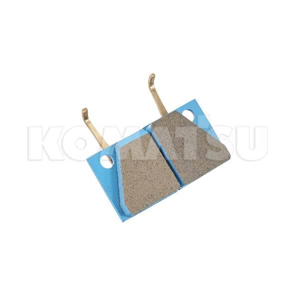Control Brake Pad with blue metal backing plate and two friction material segments. Features mounting tabs and holes. Weight: 0.0362 kg. Fits various Komatsu machines.
