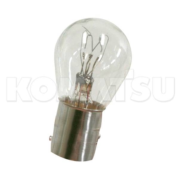 Clear incandescent lamp bulb with bayonet mount. Fits Komatsu models GD605A-3, GD525A-1, GD825A-2, GD625A-1, GD300A-1, GD605A-1. Weight: 0.01 kg.