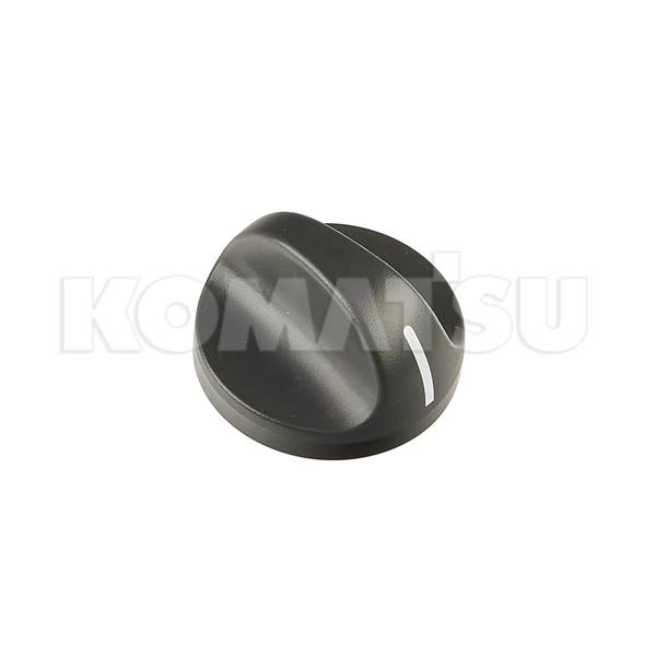 Black control knob with white indicator line. Dimensions 4.8 x 4.8 x 2.7 cm. Fits various Komatsu Excavators and Wheeled Loaders.