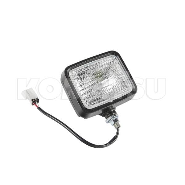 Rectangular Work Light with dimensions 16.0 x 16.0 x 3.0 cm. Suits various Komatsu machines.