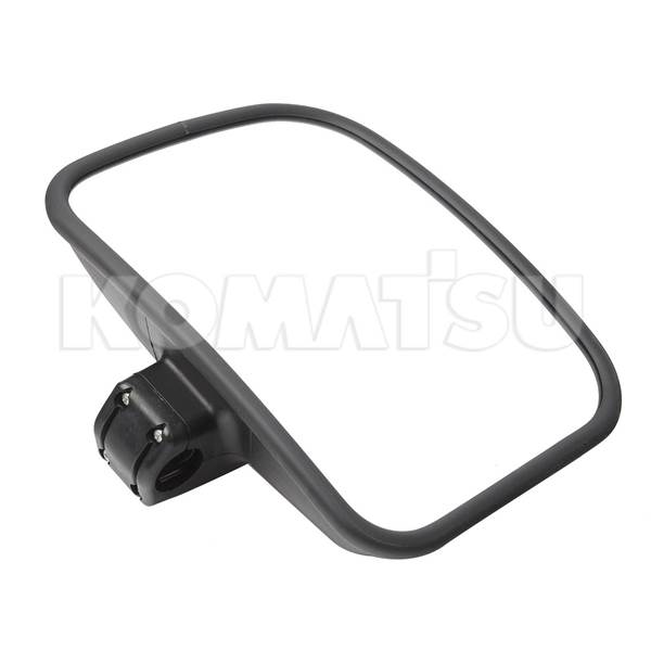 Rectangular side mirror with rounded edges and black frame. Includes mounting bracket for secure attachment. Suitable for various Komatsu Excavators and Wheeled Loaders.