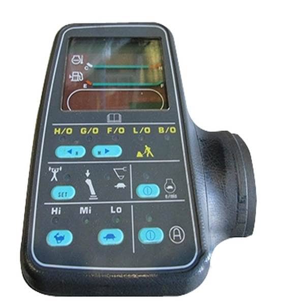 Monitor Panel Module for controlling or monitoring equipment. Fits Komatsu models PC200-6, PC120-6, PC220-6, PC100-6, PC200LC-6, PC220LC-6. Weight: 0.76 kg.