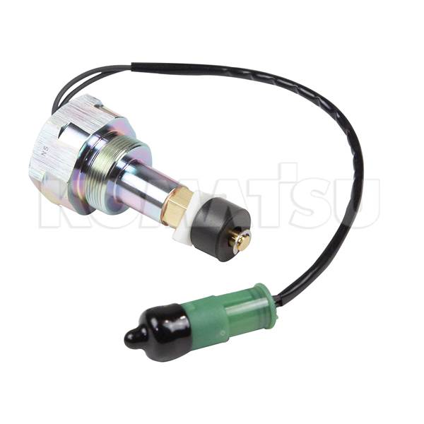 Cylindrical Metal Sensor with threaded end and cable attached. Dimensions: 4.6 x 46.0 x 4.6 cm. Suits various Komatsu Wheeled Loaders models.