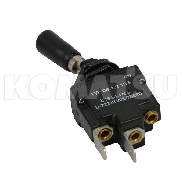 Toggle Switch with black handle, dimensions 2.9 x 8.0 x 1.8 cm. Designed to meet Komatsu Engineering Standards.
