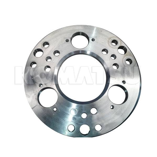 Final Drive Plate with polished finish and multiple mounting holes. Fits various Komatsu models. Weight: 15.3 kg.