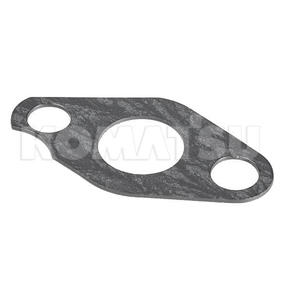 Engine Gasket with three circular holes of varying sizes. Designed for use in machinery or automotive applications to create a seal between two surfaces. Meets Komatsu Engineering Standards.