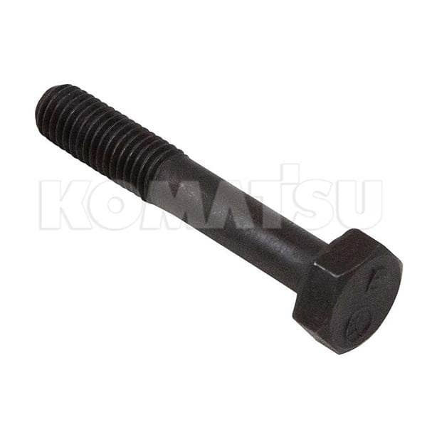 Black hexagonal bolt with 10mm diameter and 60mm length. Threaded end covers one-third of the bolt's length. Dimensions: 19.4 x 19.4 x 3.8 cm. Fits Komatsu models D155AX-6, WA470-6, WA480-6, PC400LC-8.