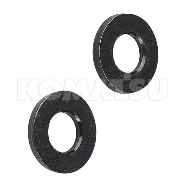 Circular metal washer with dimensions 2.0 x 2.0 x 0.2 cm. Diameter: 8mm. Thickness: 2.3mm. Suits various Komatsu machines.