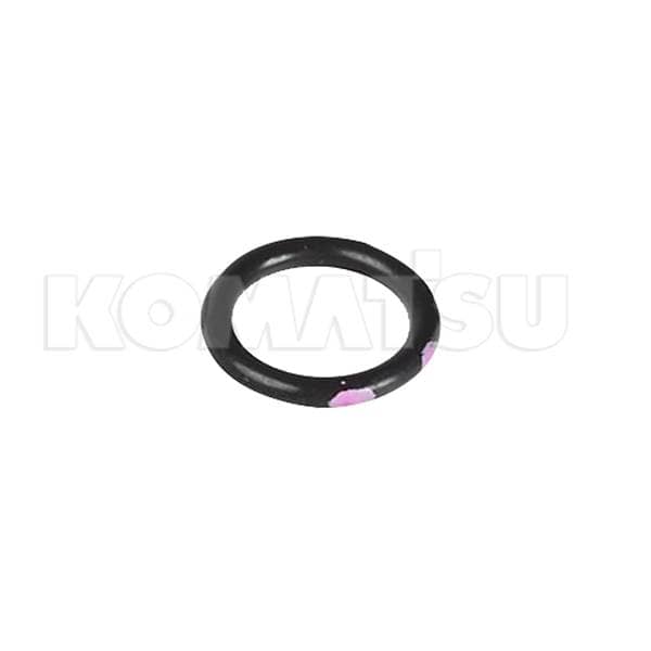 Rubber O-Ring with dimensions 8.0 x 6.6 x 0.3 cm. Temp Range: -30 to 110°C. ID Color: 2 Pink Dots. Hardness: JIS HS 90 ± 5. Material: HNBR-1B. Suits various Komatsu machines.