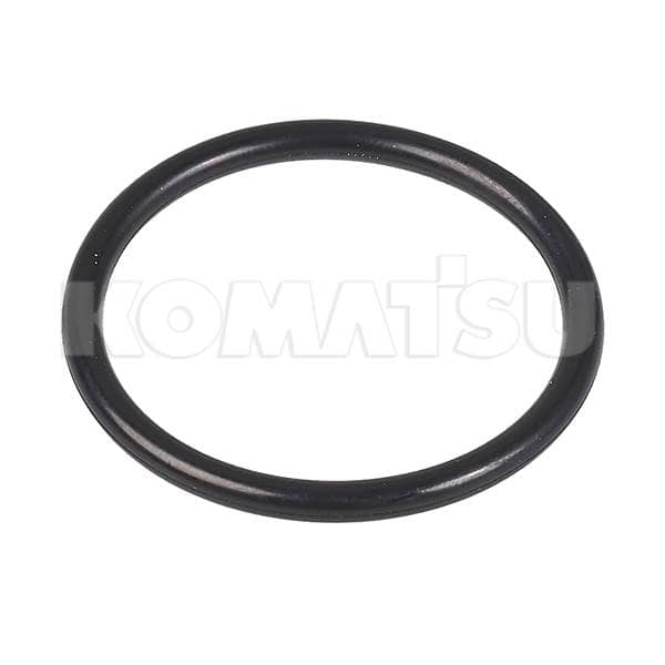 Black Rubber O-Ring with dimensions 10.5 x 13.9 x 2.5 cm. Diameter: 34.4mm, Width: 3.1mm. Temp Range: -30 to 100°C. Suits various Komatsu machines.