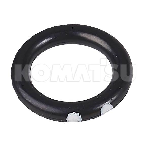 Black Rubber O-Ring with dimensions 8.1 x 10.1 x 0.9 cm. Temp Range: -30 to 110°C. ID Color: 2 White Dots. Hardness: JIS HS 90 ± 5. Suits various Komatsu machines.