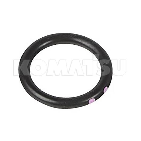 Black rubber O-Ring with dimensions 1.6 x 1.7 x 0.3 cm. Features two pink dots for identification. Temp Range: -30 to 110°C. Suits various Komatsu machines.