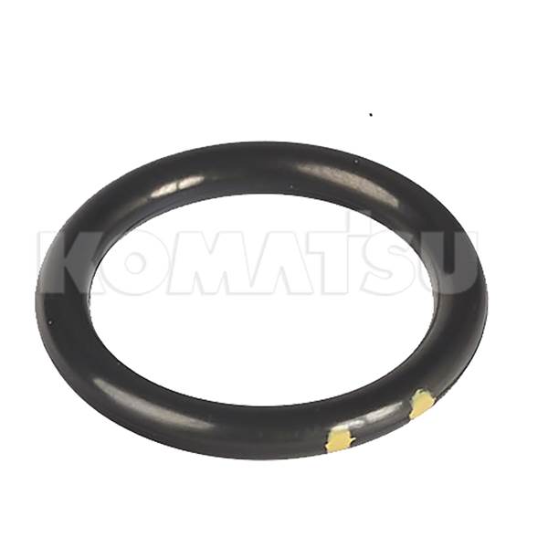 Black O-Ring with smooth, circular shape and two small yellow marks. Fits various Komatsu Excavators and Trucks models.