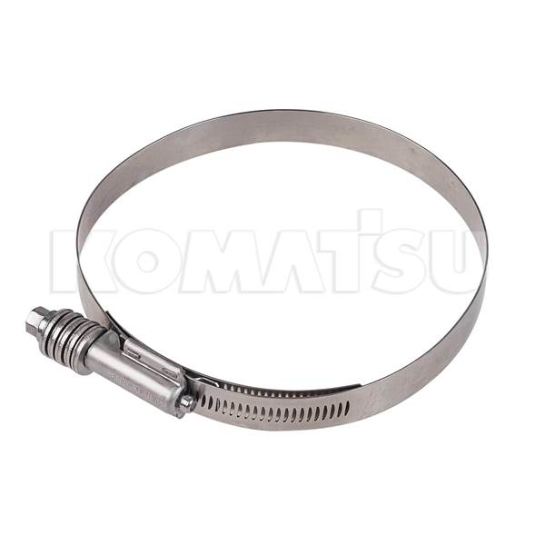 Metal Hose Clamp with dimensions 24.1 x 19.7 x 2.7 cm. Suits various Komatsu machines.