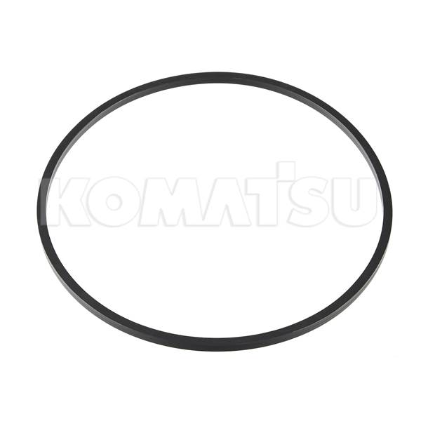 Black circular rubber O-ring seal, used to prevent leakage of fluids or gases. Weighs 0.0272 kg. Fits various Komatsu machines.