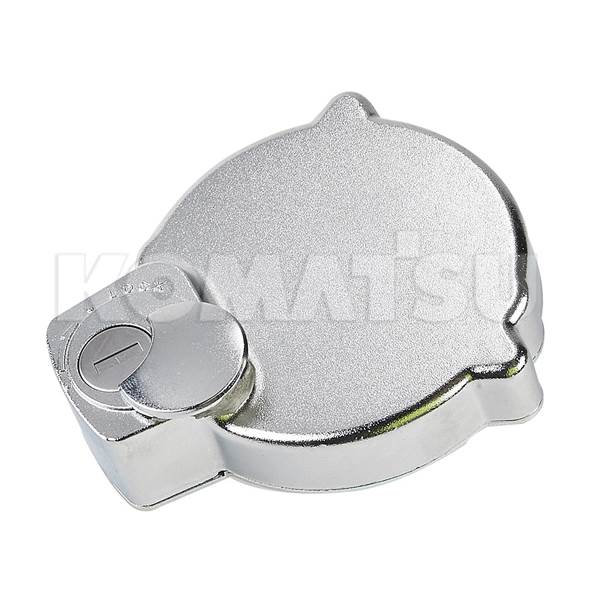 Locking Fuel Cap with dimensions 11.43 x 11.43 x 3.81 cm. Fits multiple Komatsu models.