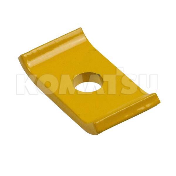 Yellow Metal Bracket with central circular hole. Dimensions: 3.2 x 6.3 x 1.0 cm. Fits various Komatsu Excavators models.