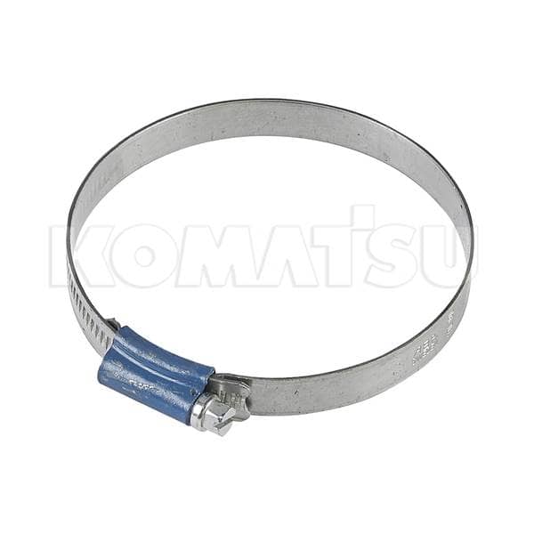 Threaded Hose Clamp with dimensions 17.78 x 17.78 x 5.08 cm and a blue protective cover. Fits Komatsu models WB97R-5E0, WB97R-5, WB97S-5E0, PC75R-2, WB93R-5E0.