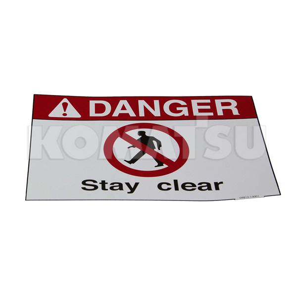 Danger Warning Plate with dimensions 10.1625 x 15.2425 x 10.1625 cm. Fits various Komatsu Wheeled Loaders models.