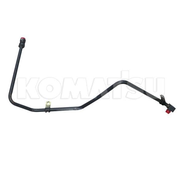 Black Metal Tube with multiple bends and mounting bracket. Features connectors with red caps on both ends. Fits Komatsu models HM300-2, HM300-1. Weight: 0.7 kg.