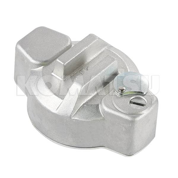Locking Fuel Cap for Komatsu models WA300-1, WA450-1. Designed for heavy machinery with a weight of 0.5987 kg. Ensures secure access to containers or compartments.