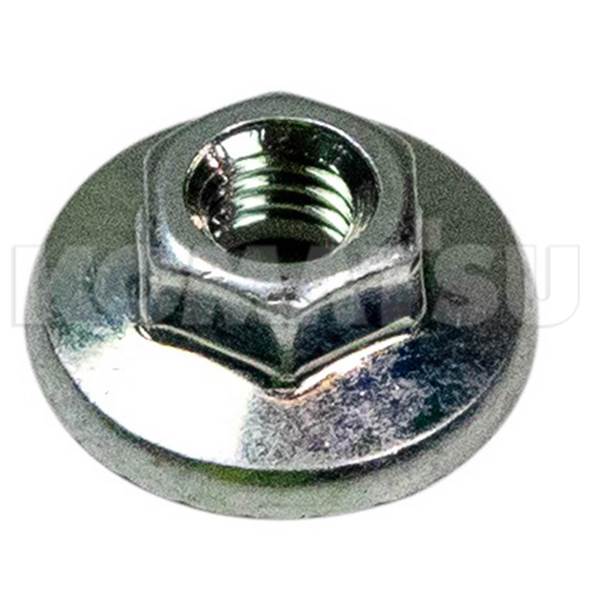 Hex Nut with integrated Washer, dimensions 1.5 x 1.5 x 0.6 cm. Suits various Komatsu Excavators and Wheeled Loaders.