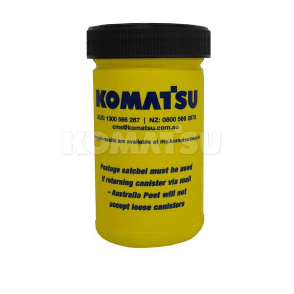 Diesel Test Canister for Komatsu Oil and Wear Analysis (KOWA®). Includes instructions for return via mail. Essential for monitoring machine health and preventing failures. Superseded by KOWA-DIESELCM.