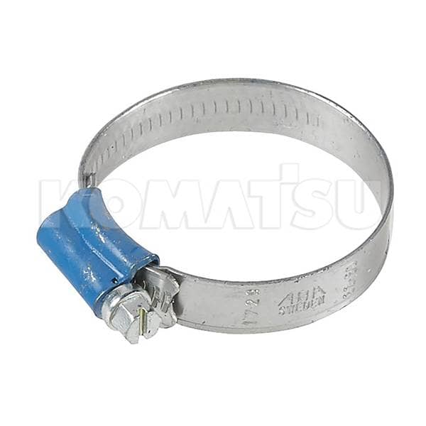 Adjustable Hose Clamp with blue-coated housing and screw mechanism. Suitable for various Komatsu engine applications. Weight: 0.04 kg.