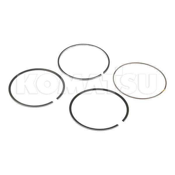 Piston Ring Assembly for internal combustion engines. Includes four rings with varying thickness and design. Weight: 0.1 kg. Meets Komatsu Engineering Standard for ease of fitment.